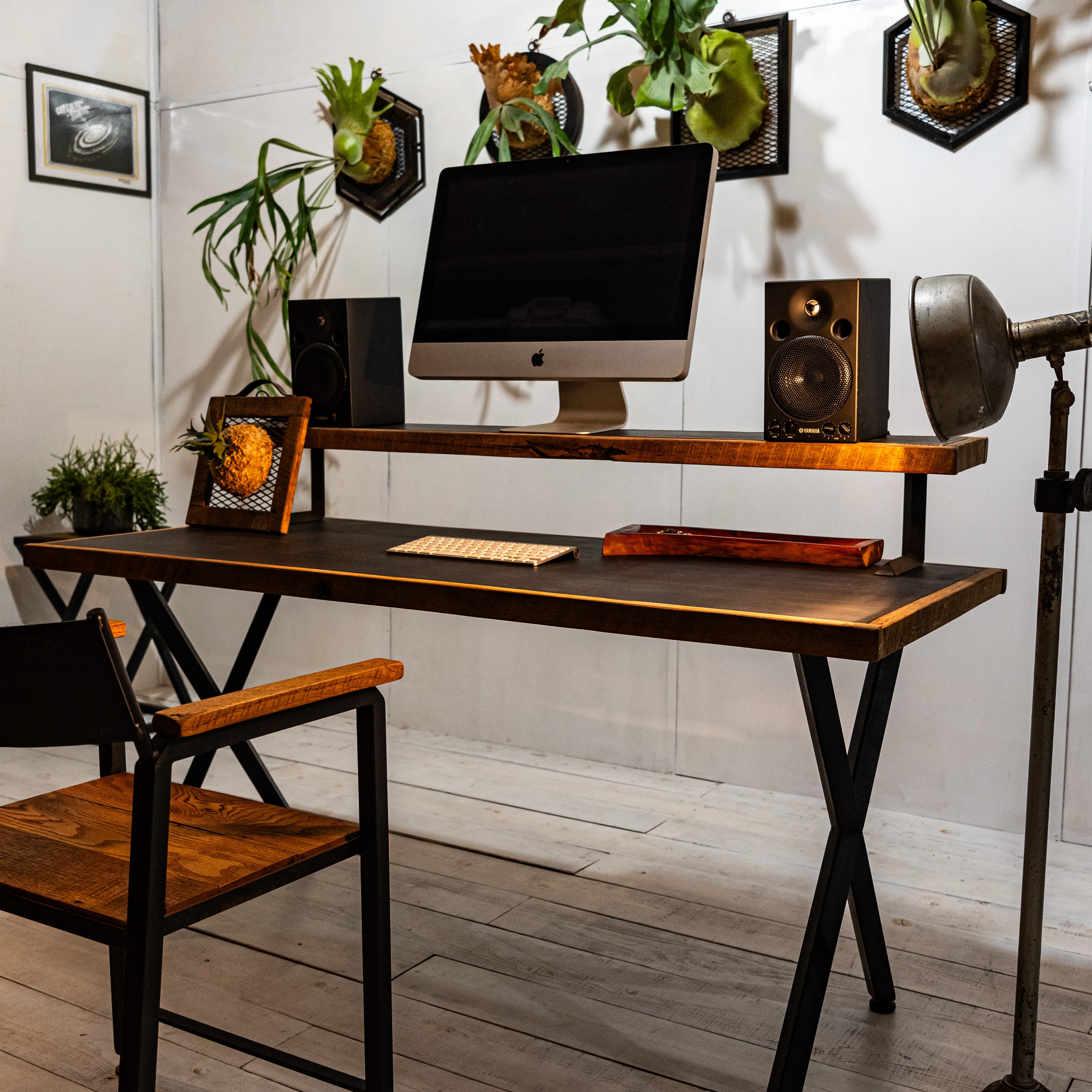 Black iron Old oak & y edge legs work desk